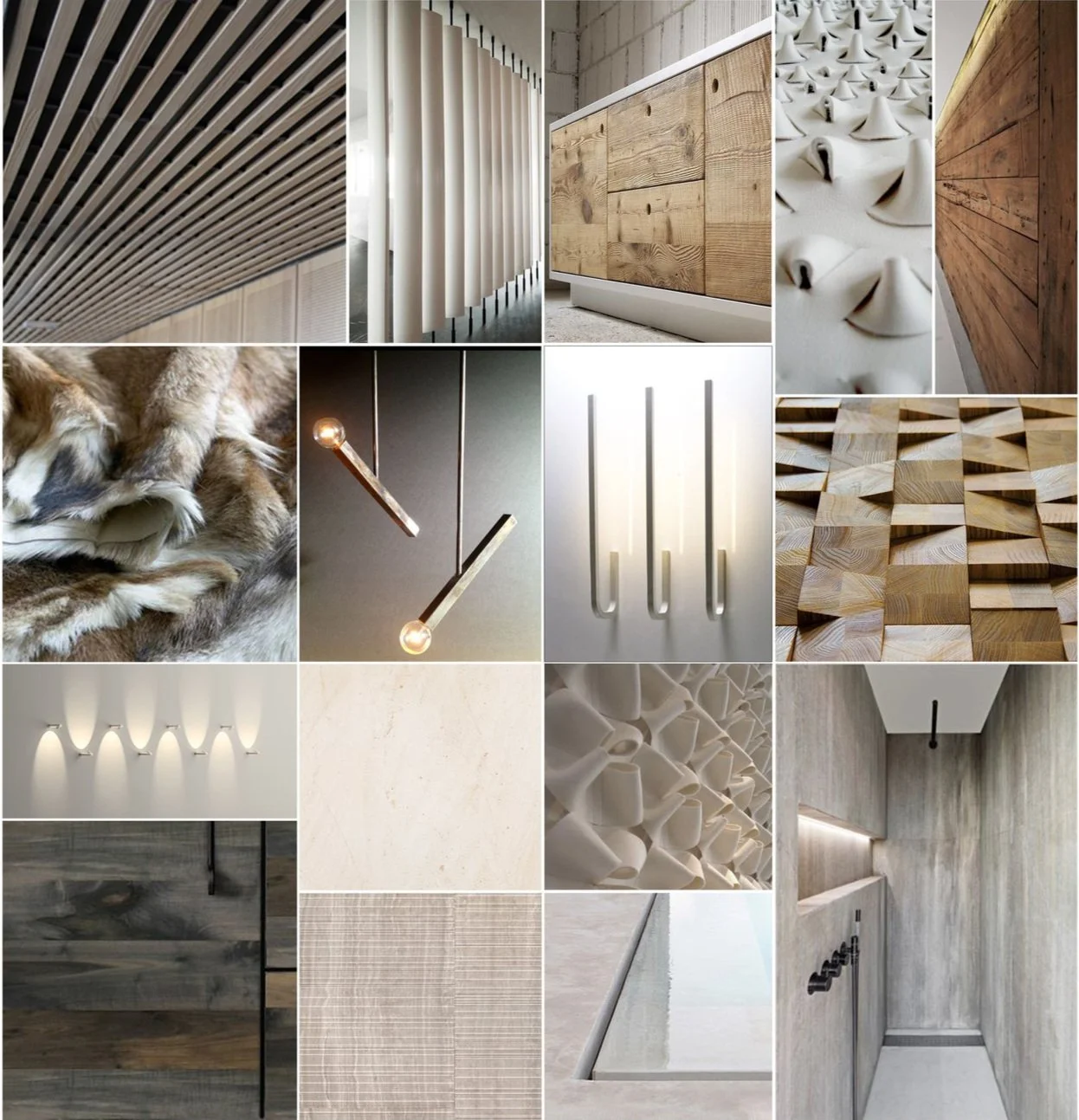 Visualize your future interior with a compilation of carefully selected inspiration images, materials, and color palettes.